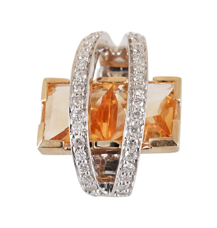 Weißgold 585, bicolor, mit zahlreichen Brillanten, zus.ca.0,40ct., 2 Citrine im Princessschliff, zus.ca.4,00ct., 4g;